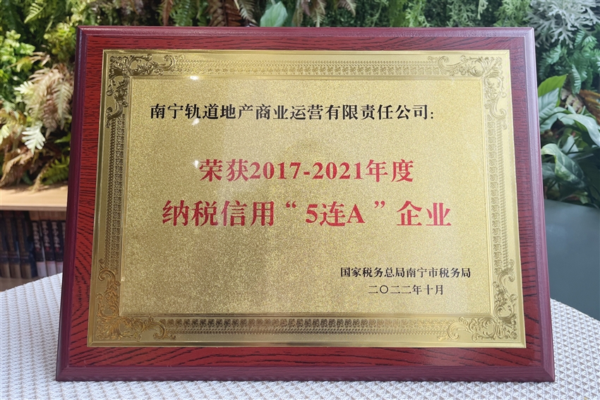 近日,軌道地產(chǎn)商業(yè)公司榮獲國家稅務(wù)總局南寧市稅務(wù)局授予的納稅信用“5連A”企業(yè)榮譽(yù)稱號(hào)。獲此殊榮,不僅是稅務(wù)機(jī)關(guān)對(duì)軌道地產(chǎn)商業(yè)公司稅務(wù)管理工作的充分肯定,更為軌道地產(chǎn)商業(yè)公司走高質(zhì)量發(fā)展之路提供了強(qiáng)有力的支撐。